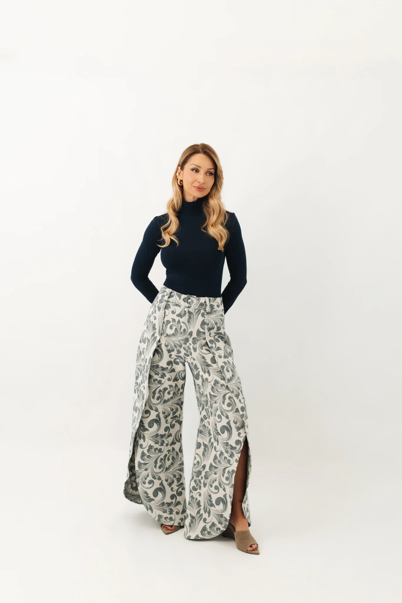 A Calça Gabi e é uma peça que une minimalismo e charme artesanal em uma modelagem impecável. Oferece conforto e acabamento interno perfeito. Na frente, cria uma estética limpa e sofisticada. É o tipo de peça que transita por vários estilos mudando apenas o tecido e você estará sempre confortável desde a praia até o jantar mais elegante.