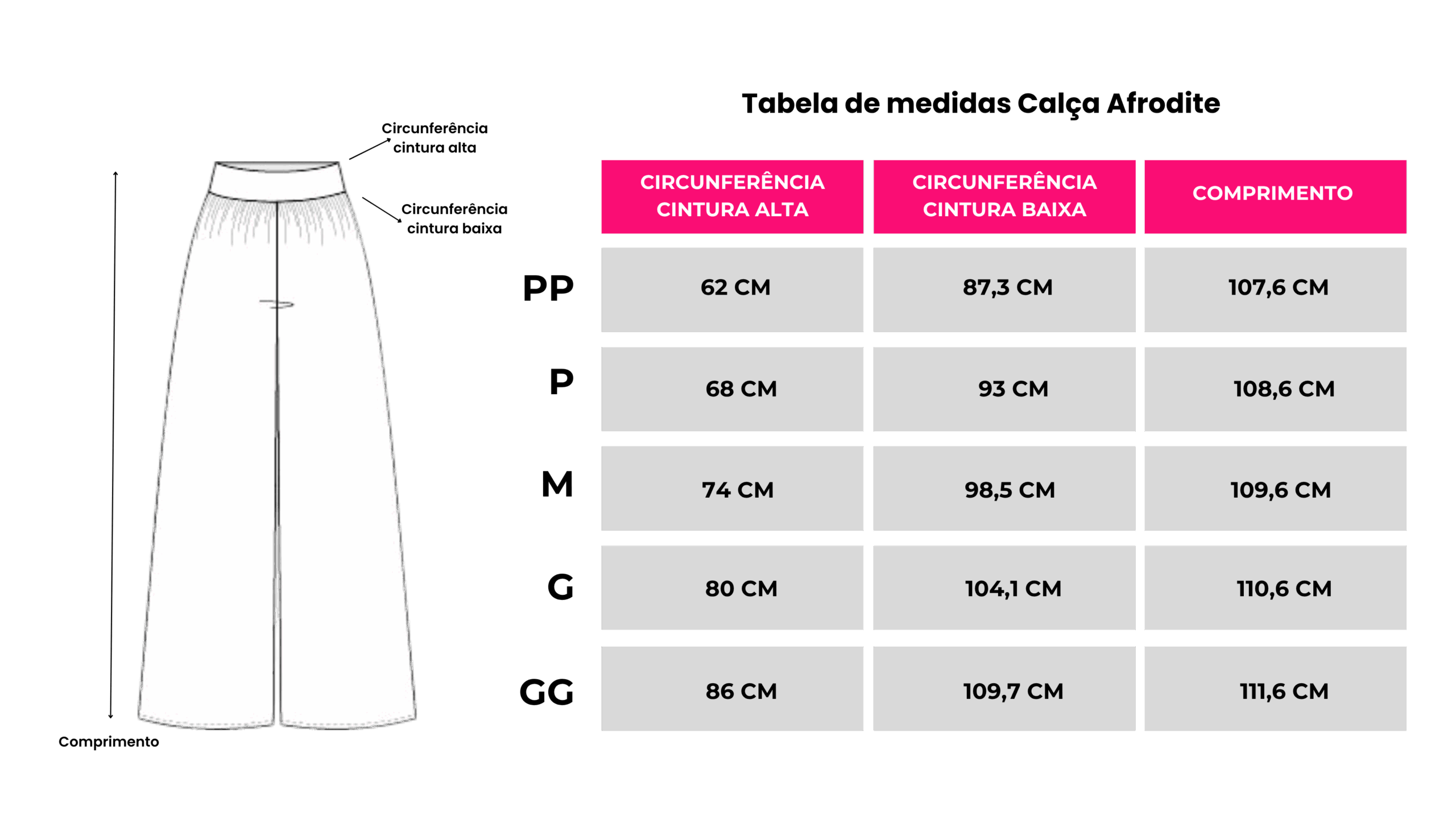 ✓A tabela de medidas para ajudar na escolha do tamanho ideal